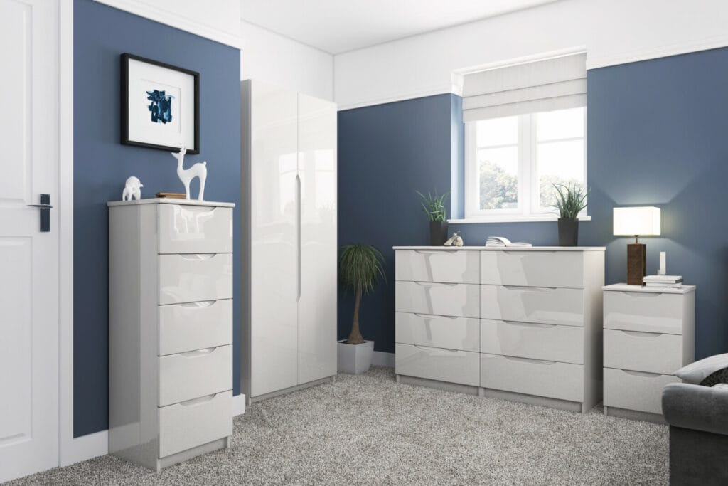 SONATA ‘SECONDS’ 5 DRAWER TALLBOY FINISHED IN HIGH GLOSS WHITE